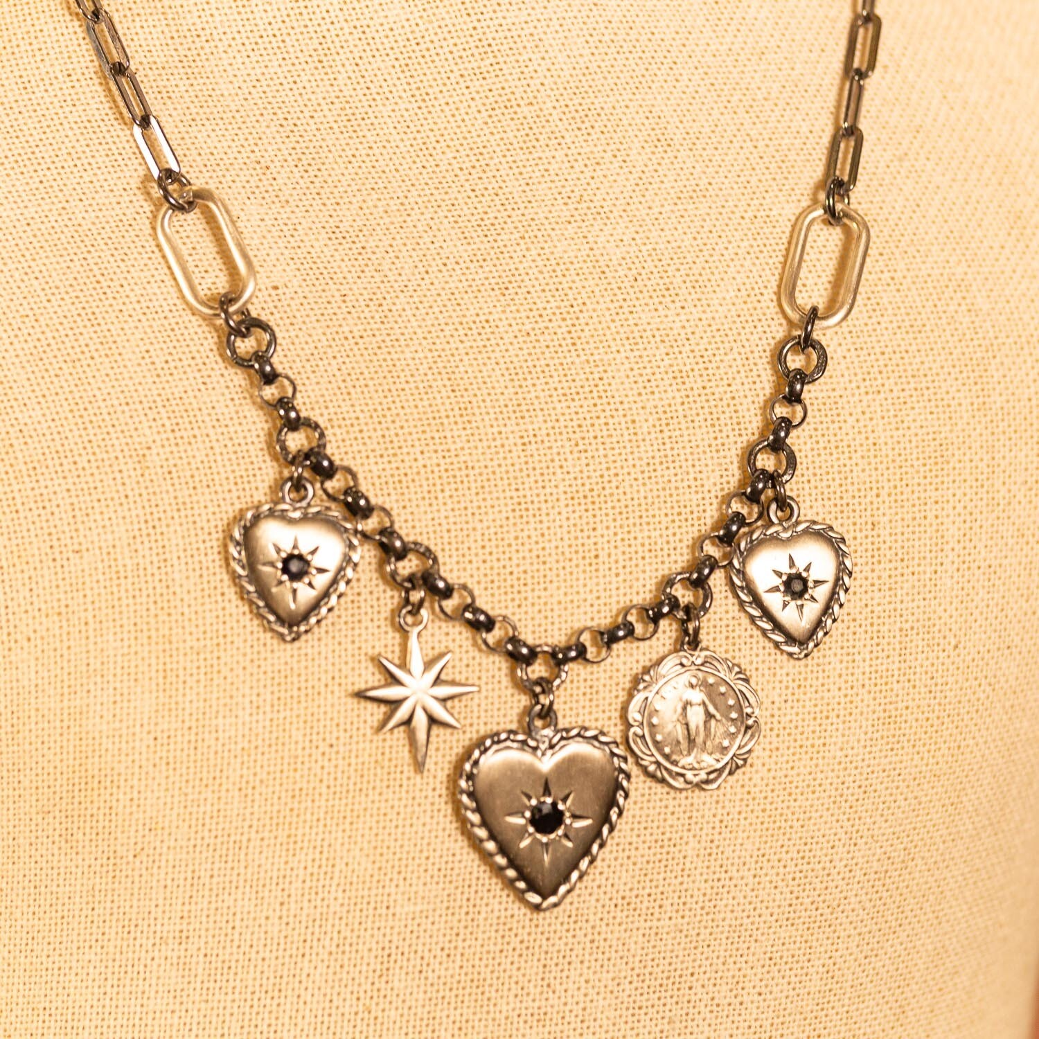 [acf_bg_style post_id=25991755 field="hover_image"]Collana ciondolo cuore zaffiri neri e diamanti€1,050.00